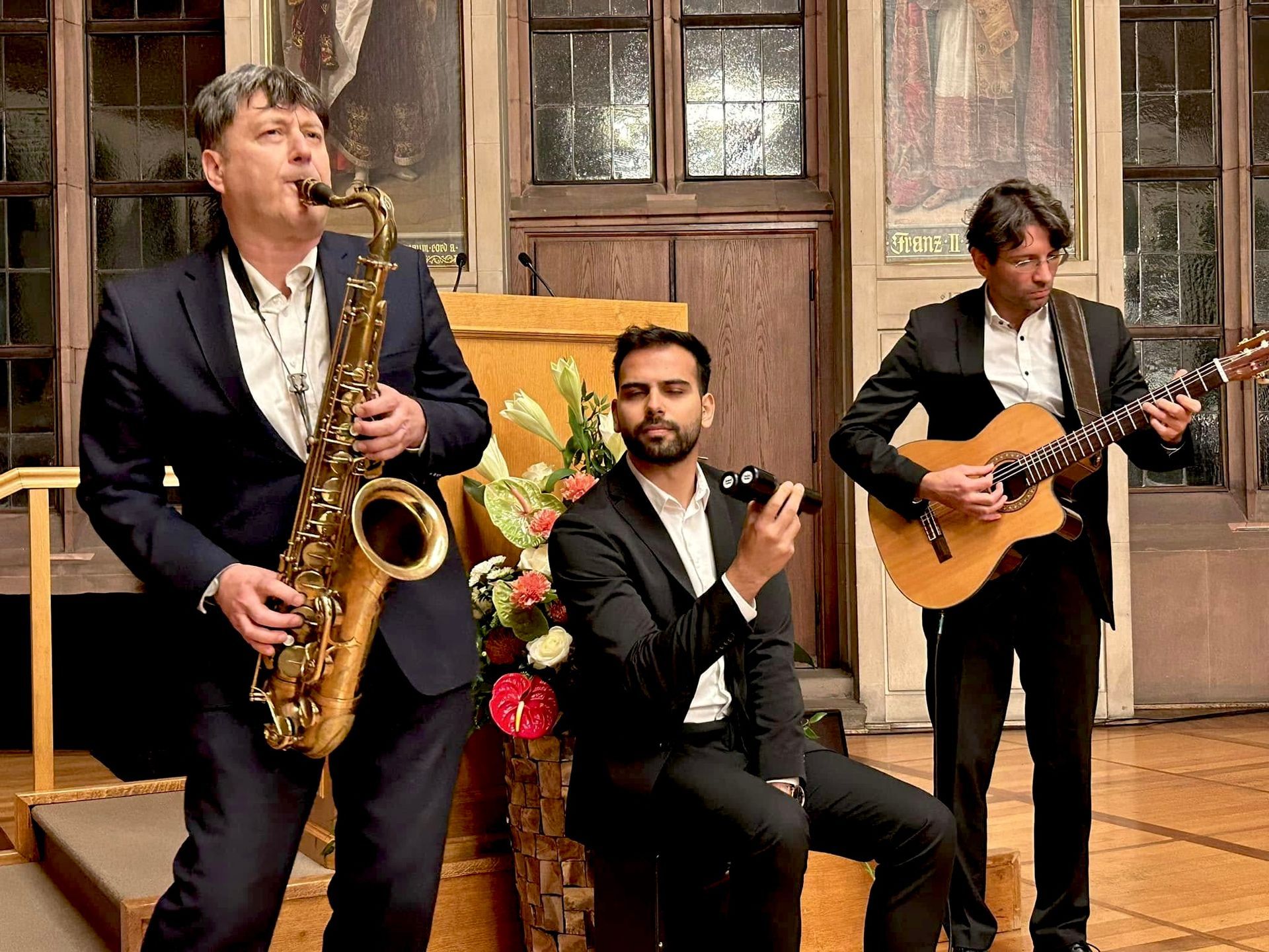 Tobias Rüger wird uns wie letztes Jahr und zudem beim Tanz in den Mai mit seiner Band "Die Schwindler" beswingen: